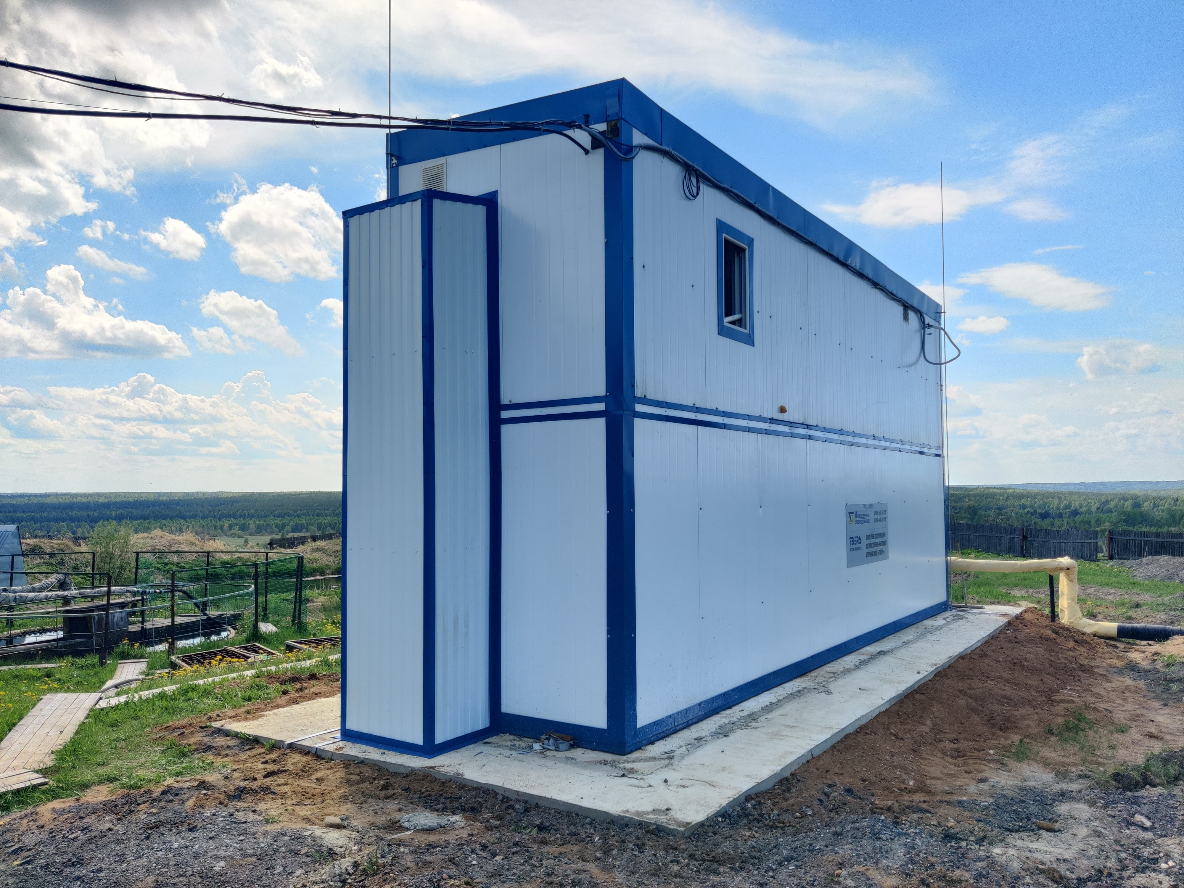 Станция очистки бытовых сточных вод "ТВЕРЬ-15БМ" представляет из себя утепленное здание из блок-модулей, установленных на фундаменте, со всем технологическим оборудованием внутри.