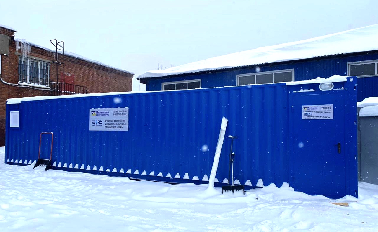 Станция очистки бытовых сточных вод "ТВЕРЬ-25С" представляет из себя утепленное здание из блок-модулей, установленных на фундаменте, со всем технологическим оборудованием внутри.